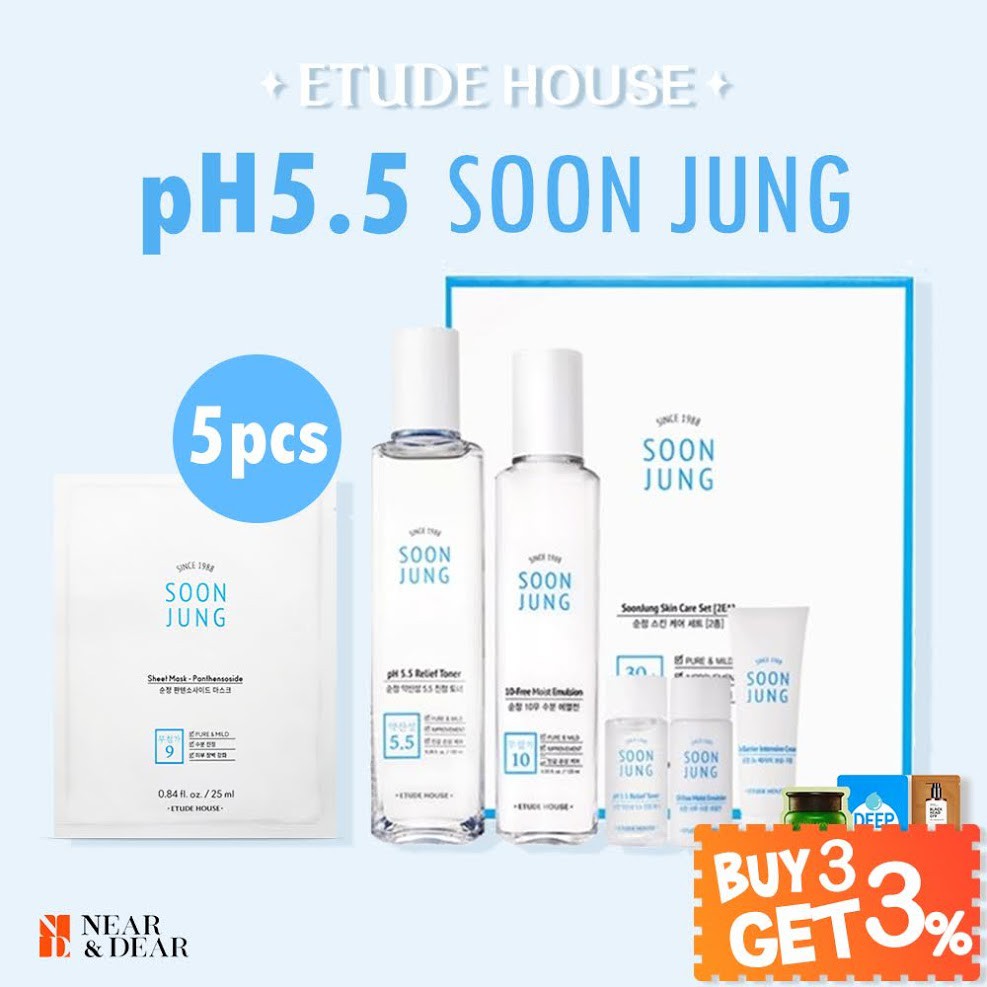 The etude house soon jung ph 5.5 relief toner is a soothing and hydrating toner that keeps your skin calm and cool throughout the day. 4.6 out of 5 stars based on 5 product ratings(5). Formulated at an ideal ph level of 5.5 that is similar to skin's natural ph, helps the skin become healthier. This is the perfect set of soon jung essential.